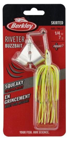 Entice big bites with the Berkley Riveter; so deafenning, fish can’t help but notice. Berkley Labs has created the ultimate sound profile using a custom rivet and annodized blade, proven wire form,and upgraded componentry; the Berkley Riveter will captivate bass with its unique squeak. The days of losing time on the water to break-in your buzzbait are over – Berkley has done the research to ensure there is no break-in period needed. Unleash the noise with the Berkley Riveter—performance-ready right out of the package.